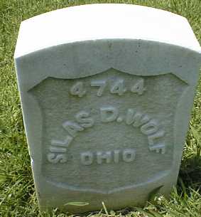 Silas D. Wolf was killed at the Battle of Stones River, Murfreesboro, Tennessee on December 31, 1862. He is buried in Stones River National Cemetery.
